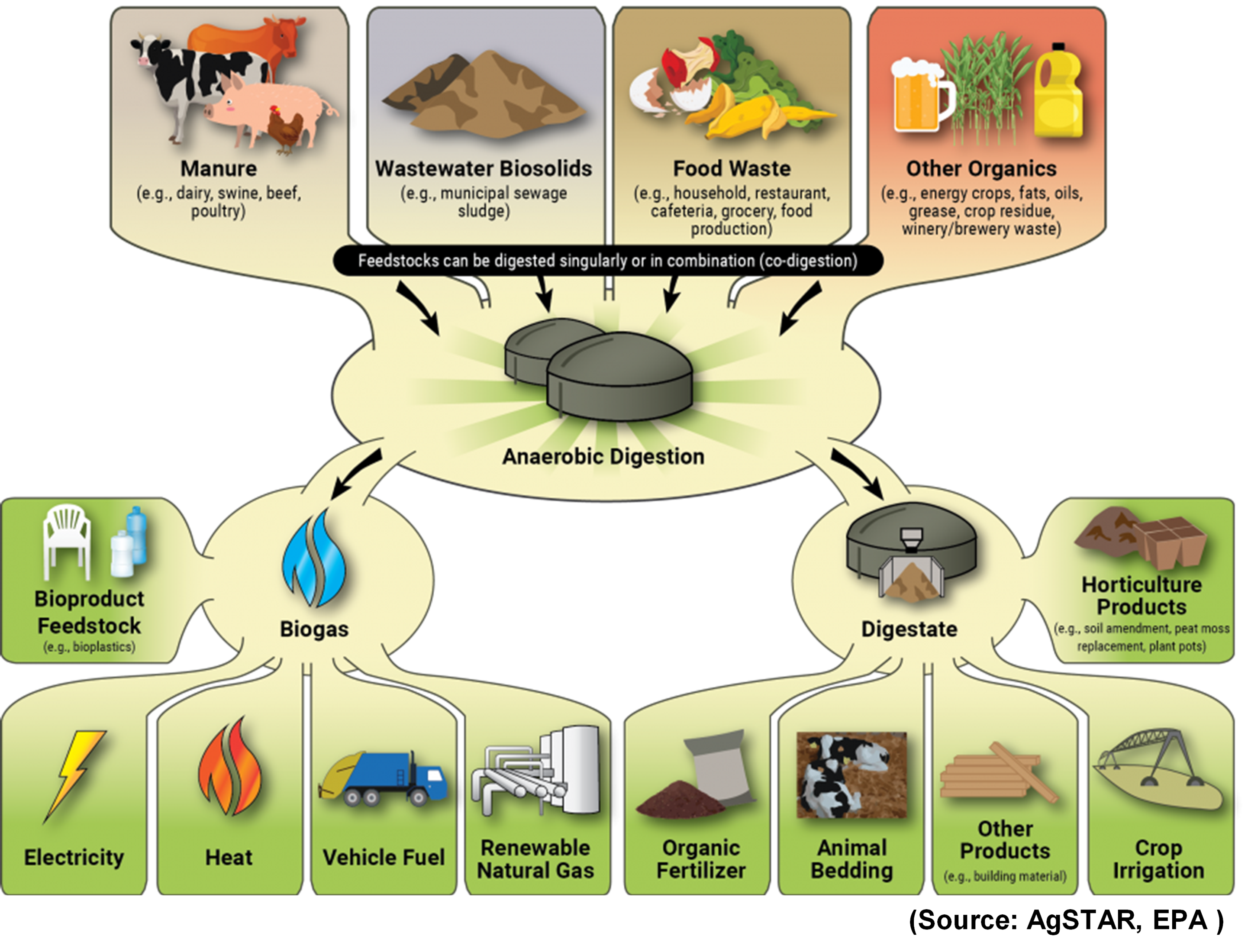 ▶ 휘발성 유기산과 수소/이산화탄소는 2가지의 서로 다른 메탄생산 대사과정을 통해 최종적으로 메탄으로 전환됩니다.